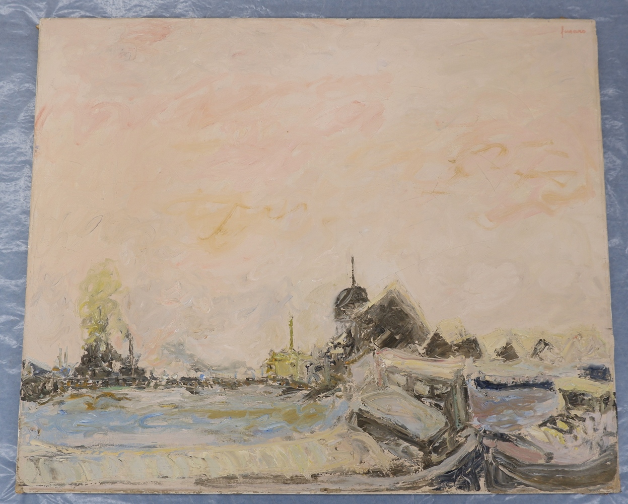 右上にサイン キャンバス裏にサイン、タイトル、年記